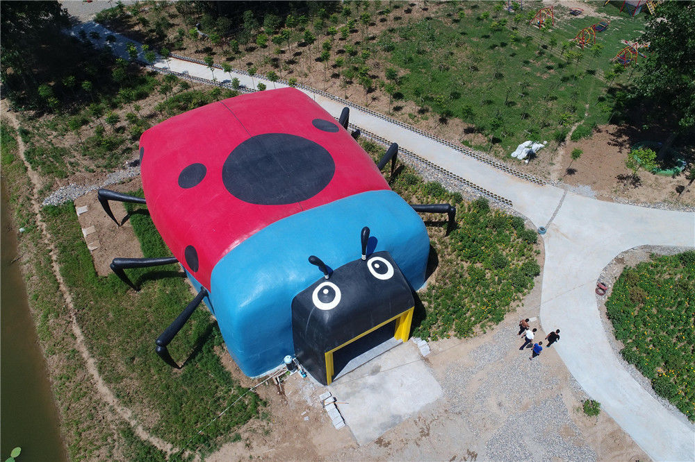 2017年7月23日,湖北省襄陽(yáng)市,在一處鄉(xiāng)村農(nóng)家樂(lè)景點(diǎn)內(nèi),一座七星瓢蟲(chóng)造型的公廁非常吸引眼球。供圖/視覺(jué)中國(guó)