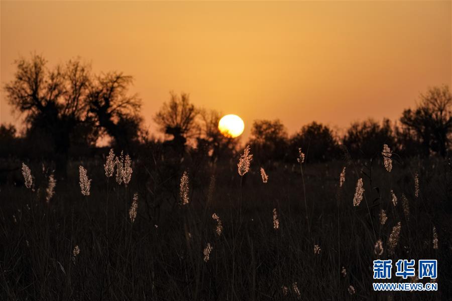 這是在克里雅河沿岸拍攝的夕陽(yáng)下的蘆葦(11月10日拍攝)。 新華社記者 沈伯韓 攝