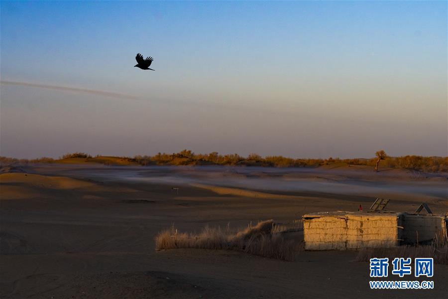 這是在克里雅河沿岸綠洲達(dá)里雅布依拍攝的被朝陽照亮的傳統(tǒng)民居(11月13日攝)。 新華社記者 沈伯韓 攝