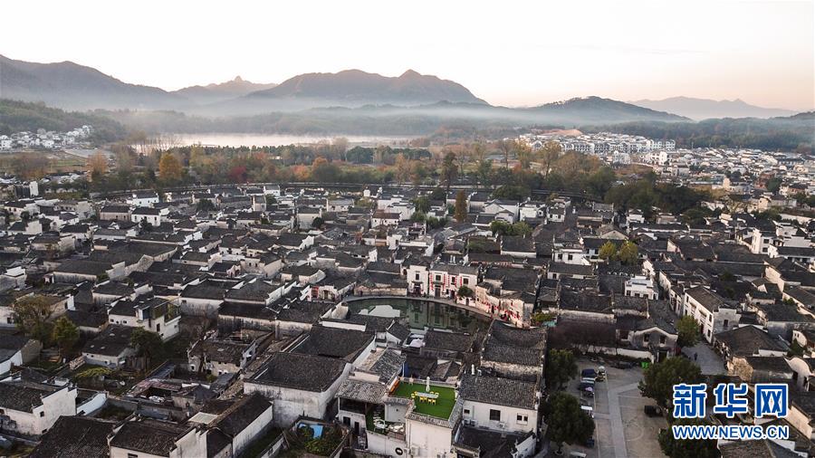 這是11月15日無人機拍攝的安徽黟縣宏村晨景。新華社記者張笑宇攝