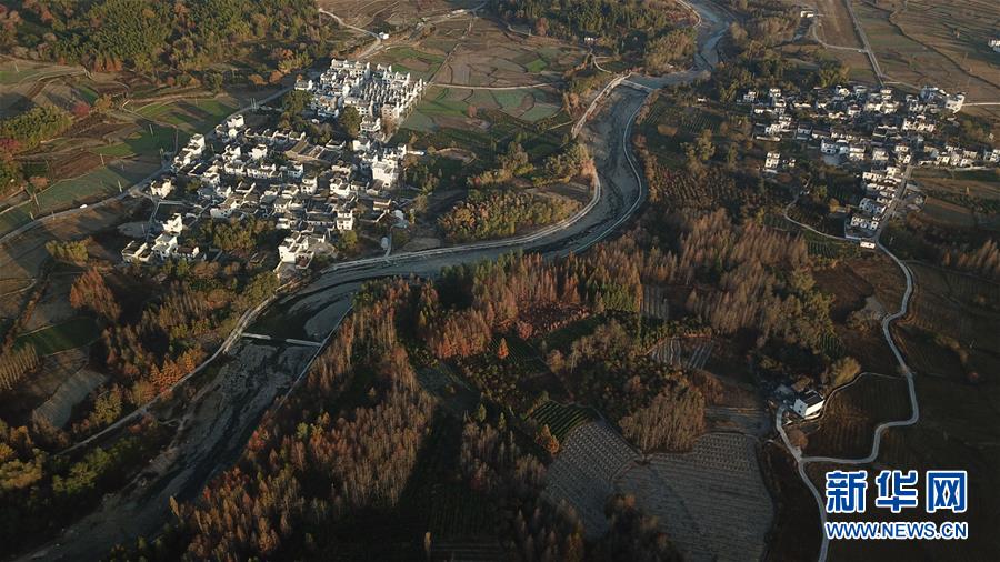 這是11月15日無人機拍攝的安徽黟縣宏村風景區(qū)附近的村落。新華社記者張端攝