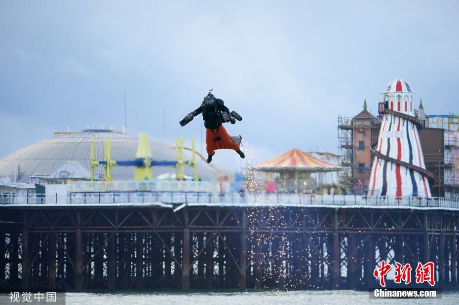 11月18日訊,英國(guó)布萊頓,英國(guó)發(fā)明家理查德·布朗寧穿著一套由身體控制、噴氣發(fā)動(dòng)機(jī)驅(qū)動(dòng)、風(fēng)力導(dǎo)向的飛行服,以高達(dá)每小時(shí)85.06英里(約137公里)的飛行速度,打破了自己創(chuàng)下的噴氣式飛行服速度的吉尼斯世界紀(jì)錄。圖片來(lái)源:視覺(jué)中國(guó)