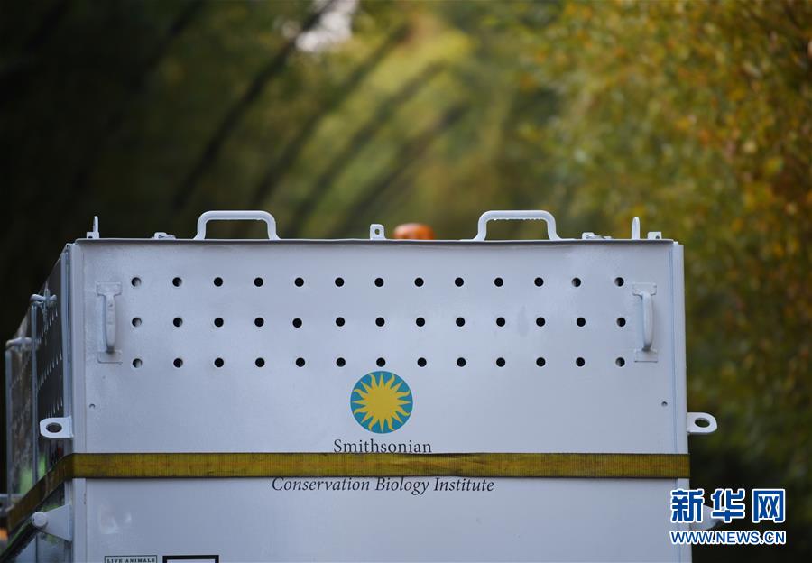 11月19日,在美國華盛頓的美國國家動物園,裝有大熊貓“貝貝”的箱子被運(yùn)往卡車,準(zhǔn)備前往機(jī)場。 新華社記者 劉杰 攝