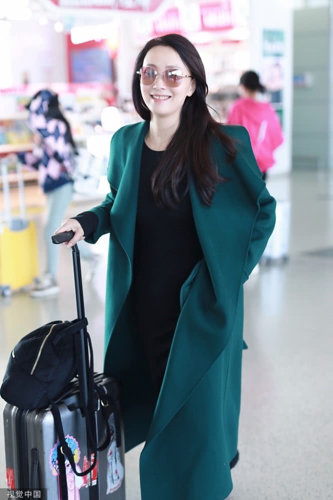 47歲陶虹獨自現(xiàn)身機場 穿綠大衣溫婉大方 面對鏡頭笑容親切