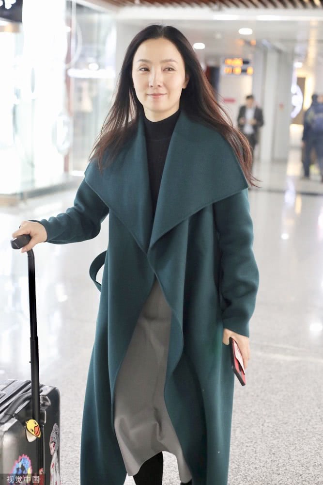 當天,陶虹身穿一件深綠色的大衣,長發(fā)披肩笑容親切,內(nèi)搭一件黑色緊身衣,腳踩一雙黑色的毛絨拖鞋,居家范兒十足。
