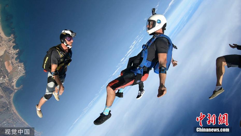 11月20日訊,以色列一群跳傘者在從一萬三千英尺(約3962米)的高空進行跳傘,墜落時盡情嬉戲、舞動和翻跟斗。圖片來源:視覺中國