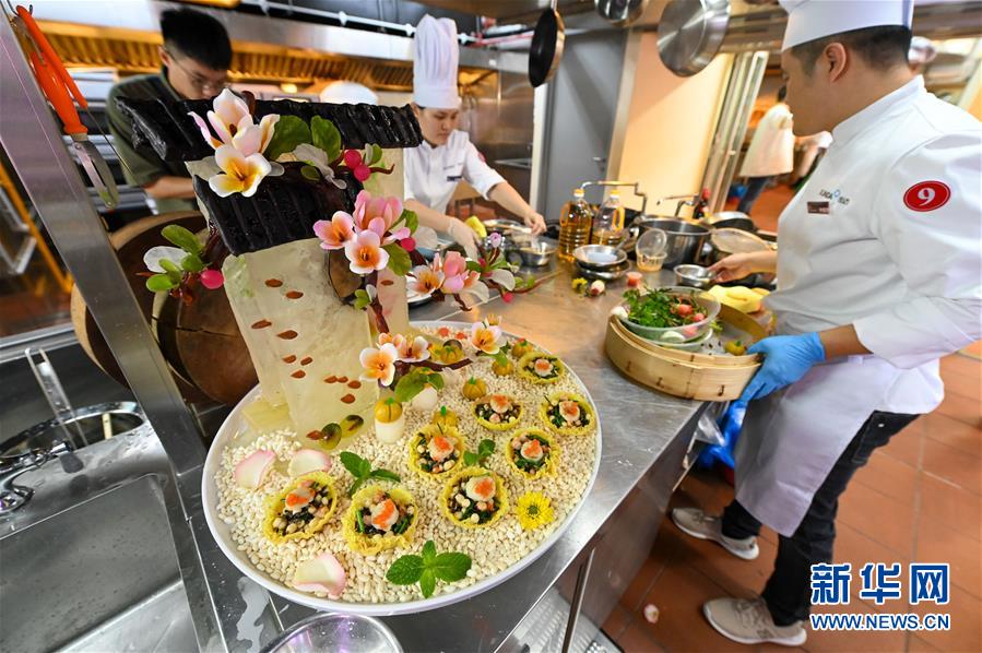 11月20日,在馬來西亞吉隆坡,參賽廚師在制作美食。新華社記者朱煒攝