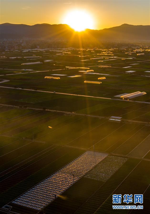 這是云南省玉溪市通??h的田園風(fēng)光(11月23日無人機拍攝)。初冬時節(jié),云南省玉溪市通??h風(fēng)景秀麗,山巒、湖水與農(nóng)田組成了一幅美麗的田園詩畫卷。新華社記者胡超攝