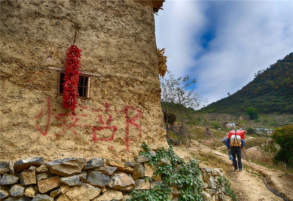 2019年11月16日,四川涼山,背著快遞包裹回家,成為懸崖村天梯上的新風(fēng)景。