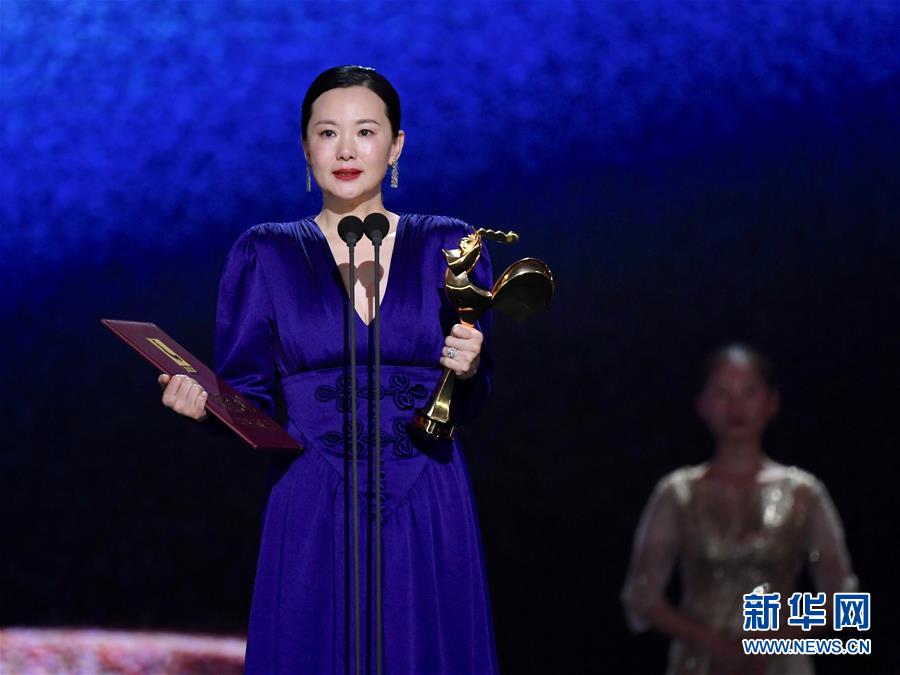 11月23日,電影《地久天長》主演詠梅獲得最佳女主角獎。 當日,第32屆中國電影金雞獎頒獎典禮在福建廈門舉行。 新華社記者姜克紅攝