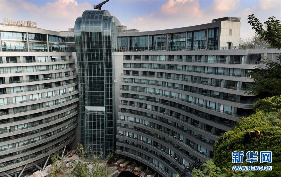 一名工人(右下)在位于酒店頂樓附近的崖壁上施工(11月13日攝)。新華社記者方喆攝