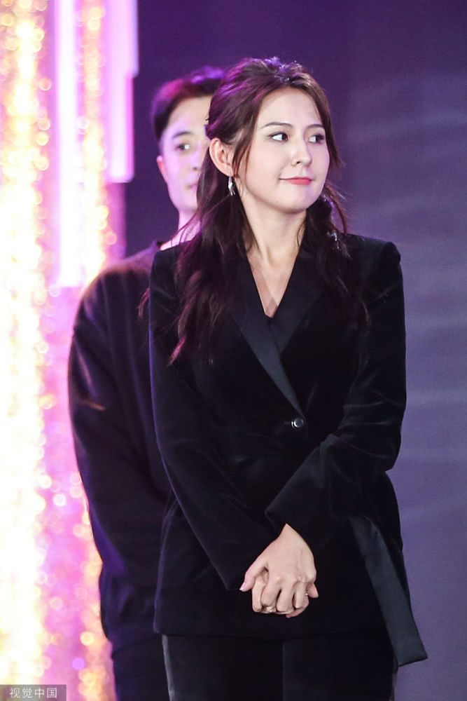 熱依扎穿西裝干練時髦。