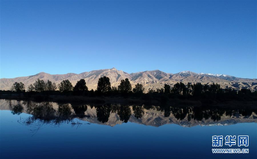 在青海貴德,千姿湖景區(qū)內(nèi)群山與湖水相映成畫(4月16日無人機(jī)拍攝)。新華社記者張宏祥攝