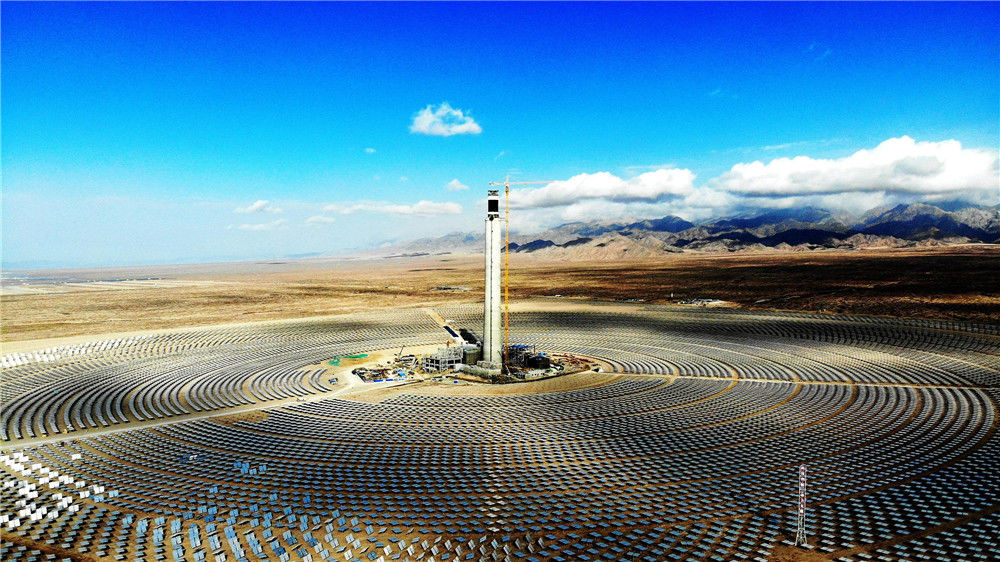 2018年10月13日,地處青海省海西州德令哈市的中控太陽能發(fā)電有限公司10兆瓦塔式熔鹽光熱電站。位于中國西部的青海省,有“三江源”“中華水塔”之稱。如今,青海清潔能源正在從“風(fēng)生水起”走向“風(fēng)光無限”。青海太陽能資源約占中國的11%,光熱資源平均年輻射總量可達每平方米5860—7400兆焦耳,僅次于西藏;同時,該省可用于新能源開發(fā)的荒漠土地面積約10萬平方公里,裝機規(guī)模可達35億千瓦,折合年發(fā)電量約5.6萬億千瓦時,是三峽電站年發(fā)電量的56倍。