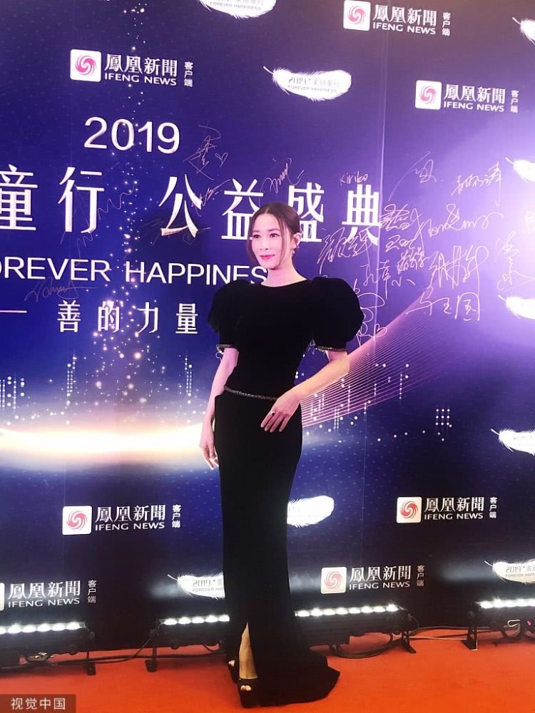佘詩曼穿黑禮裙身材姣好氣質(zhì)佳。