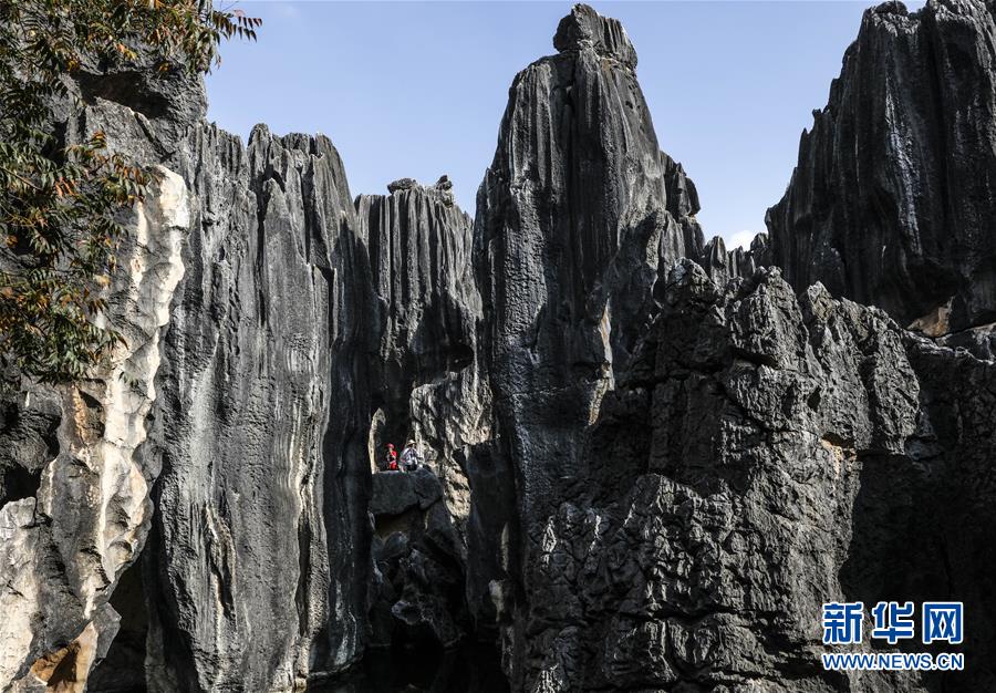 當地少數民族樂手在石林景區(qū)演奏民族音樂(11月27日攝)。新華社記者蘭紅光攝