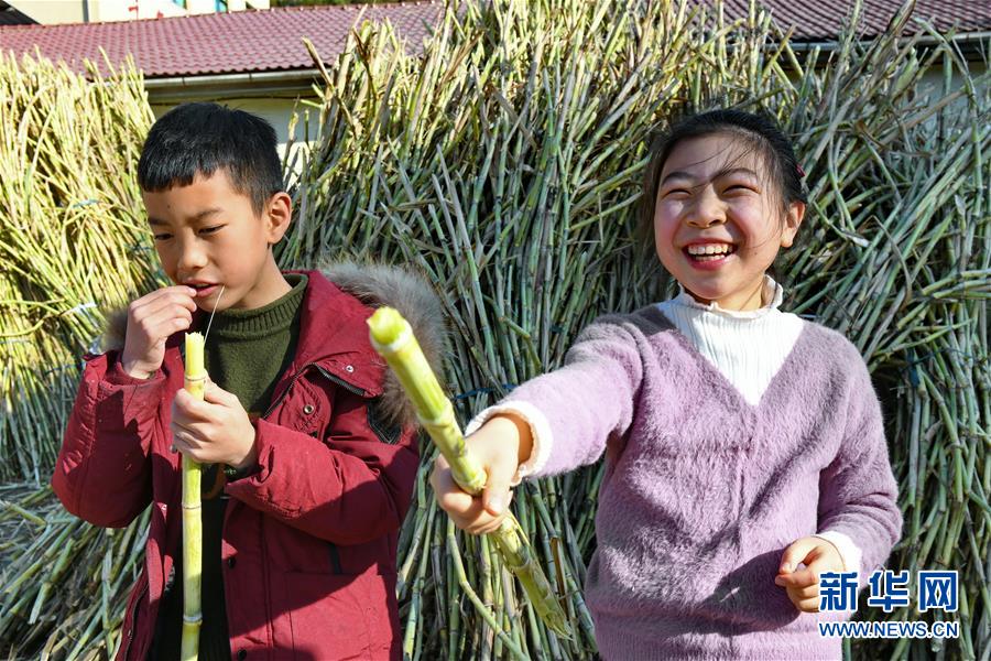 12月7日,松溪縣鄭墩鎮(zhèn)萬前村的小朋友在吃“百年蔗”。近期,福建省松溪縣鄭墩鎮(zhèn)萬前村特色甘蔗品種“百年蔗”進入采收期,當?shù)剞r(nóng)民砍蔗制糖,一派繁忙景象。近年來,萬前村大力發(fā)展蔗糖生產(chǎn),帶動農(nóng)民脫貧致富,目前全村種植“百年蔗”面積達420畝。新華社記者張國俊攝