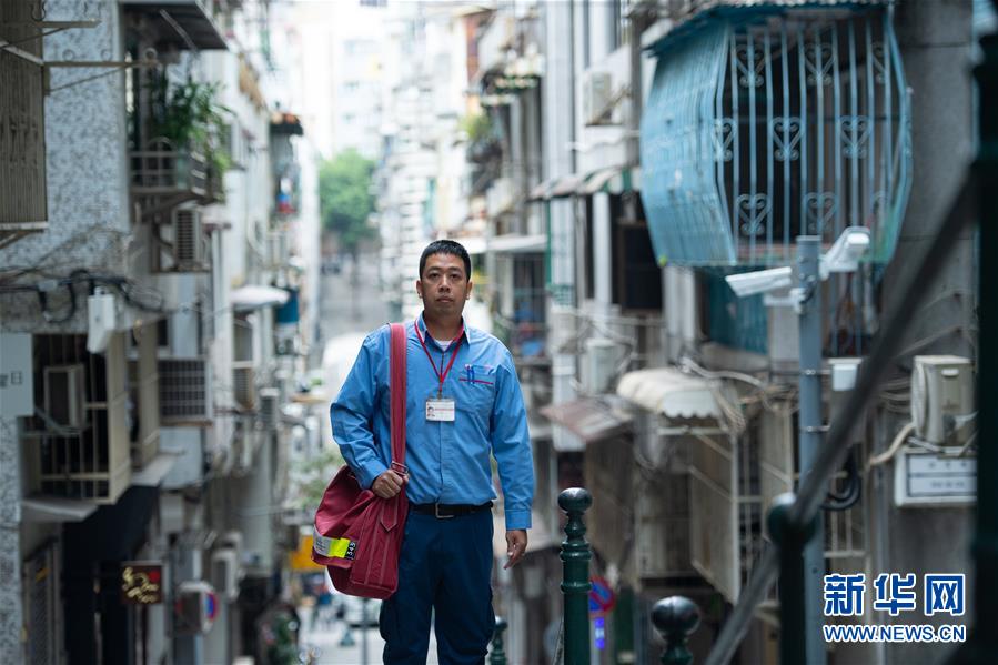 12月5日,澳門郵電局郵差劉振驅去投送信件,他已經工作了4年。 新華社記者 張金加 攝