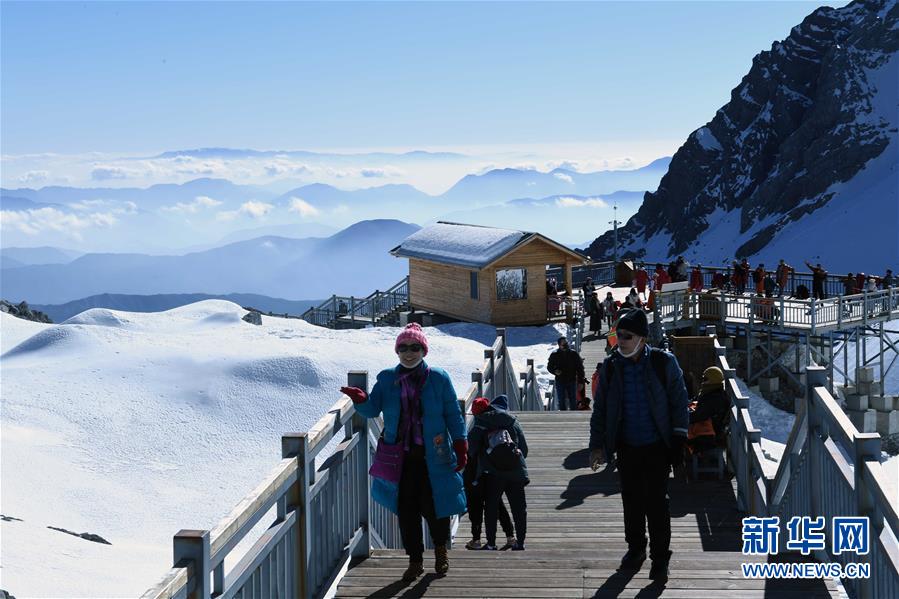 12月10日,人們在玉龍雪山游覽觀光。新華社記者楊宗友攝