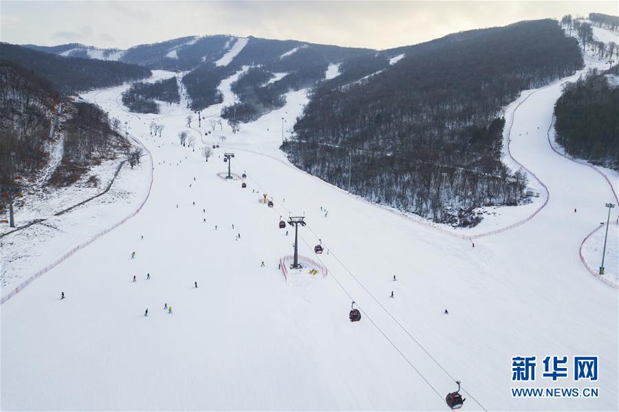 空中俯瞰吉林市萬科松花湖度假區(qū)滑雪場(12月13日無人機(jī)拍攝)。新華社記者 張豪夫 攝