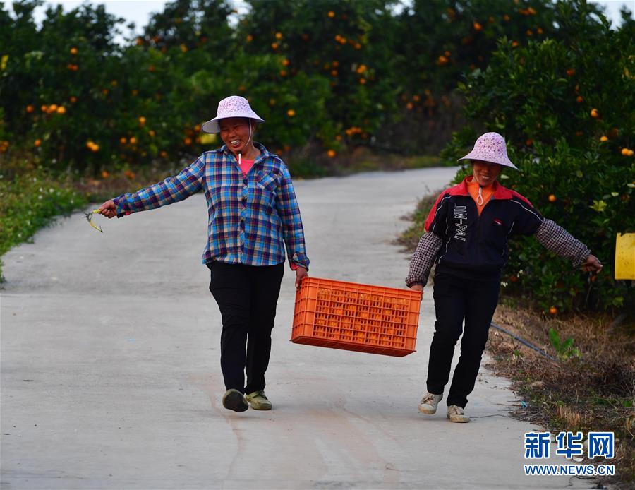 12月11日,廣西柳州市鹿寨縣四排鎮(zhèn)四排村村民在果園里挑運(yùn)砂糖橘。新華社記者 黃孝邦 攝