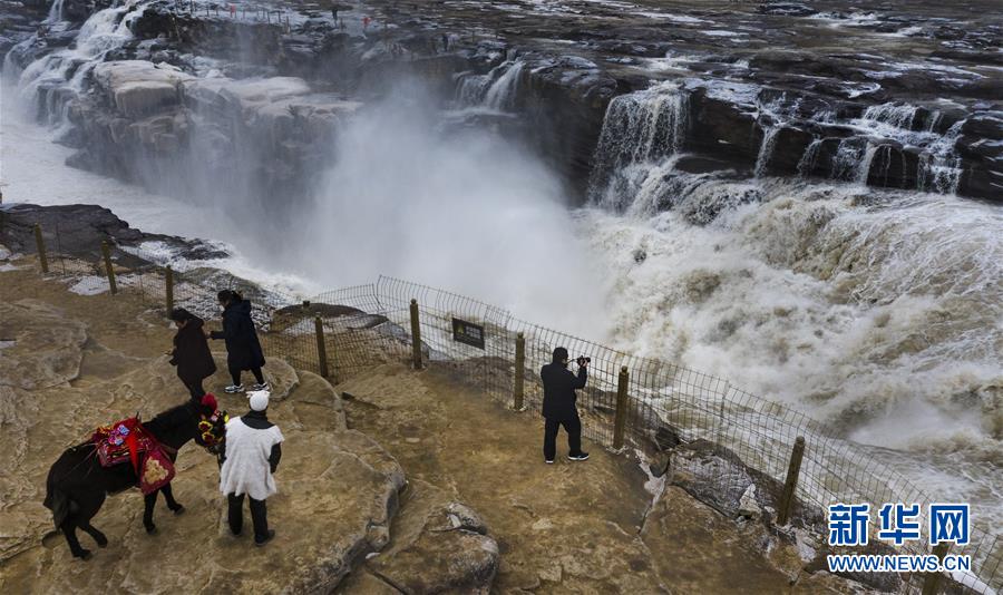 12月14日,游人在壺口瀑布景區(qū)游玩(無人機(jī)拍攝)。 新華社記者 陶明 攝