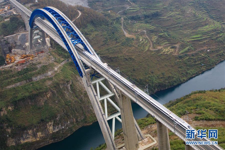 12月2日,一輛試驗列車駛過成貴高鐵鴨池河特大橋。當(dāng)日,正在進(jìn)行聯(lián)調(diào)聯(lián)試的成貴高鐵進(jìn)入全線拉通空載模擬運行階段,試驗列車將在成都到貴陽區(qū)間內(nèi)全線路運行。線路全長650公里的成貴高鐵是我國“八縱八橫”高速鐵路網(wǎng)的重要組成部分,設(shè)計時速為250公里。新華社記者劉續(xù)攝