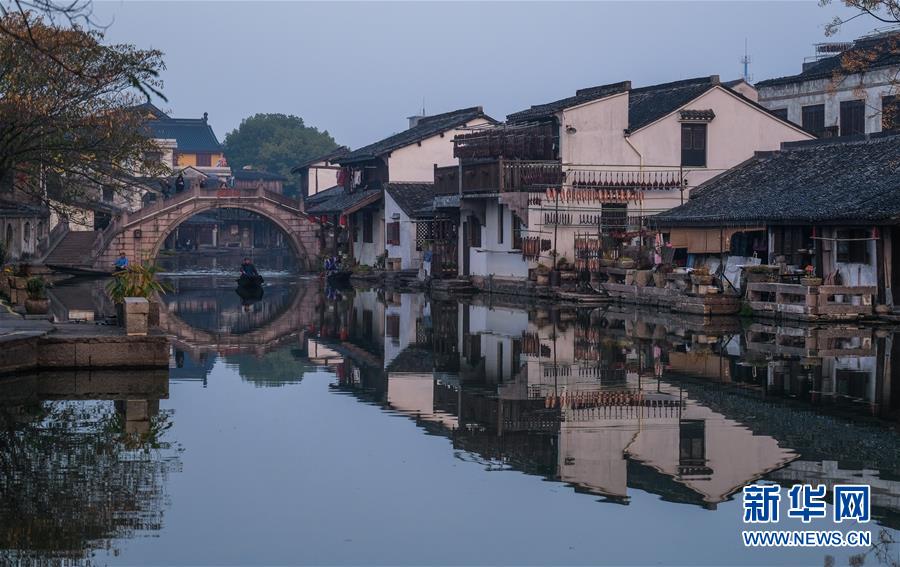 12月12日拍攝的晨曦中的安昌古鎮(zhèn)。