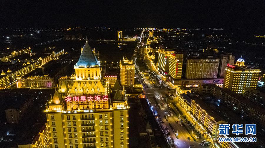 8月28日無人機拍攝的滿洲里市中心夜景。滿洲里市位于呼倫貝爾大草原腹地。新華社記者沈伯韓攝