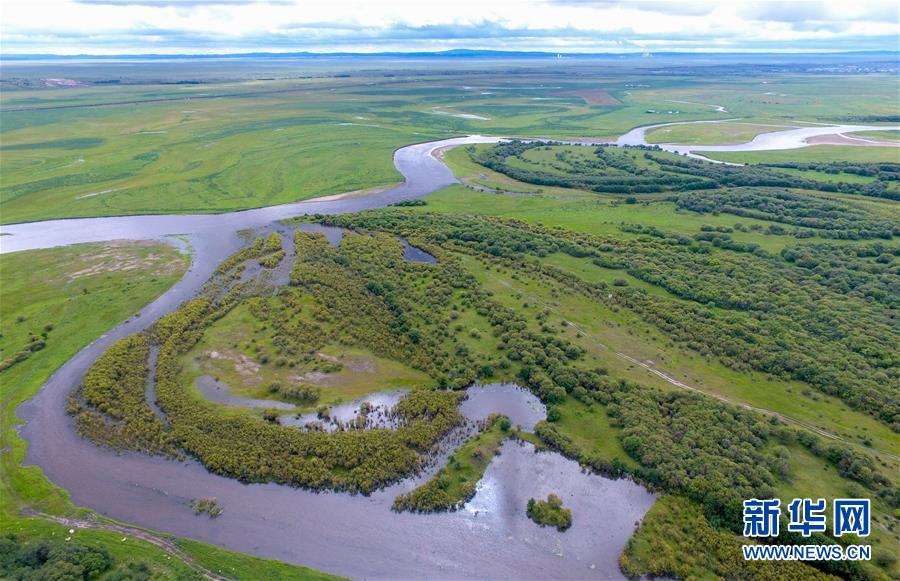 8月29日無人機拍攝的內(nèi)蒙古呼倫貝爾市額爾古納濕地景區(qū)。新華社記者劉磊攝