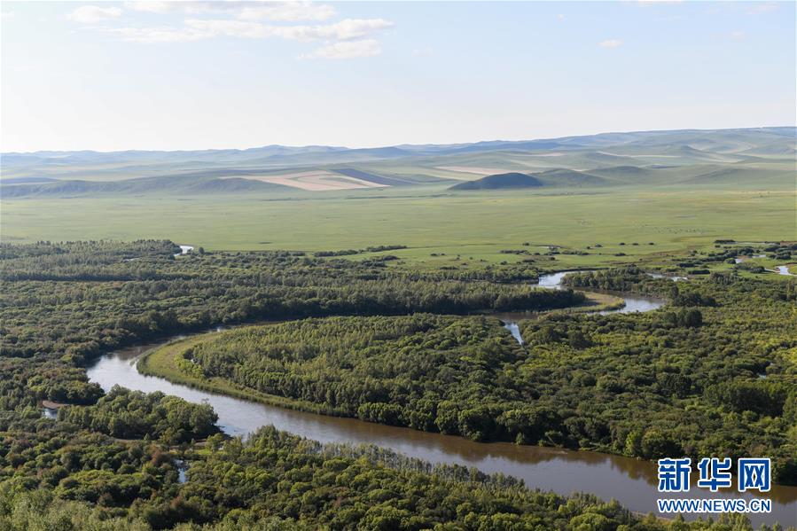 8月29日無人機拍攝的內(nèi)蒙古呼倫貝爾市陳巴爾虎旗境內(nèi)的莫日格勒河局部。新華社記者彭源攝