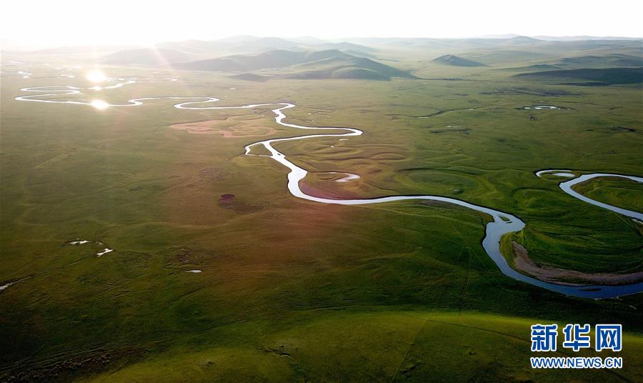 8月26日無人機拍攝的伊敏河。伊敏河流經(jīng)呼倫貝爾草原。新華社記者彭源攝