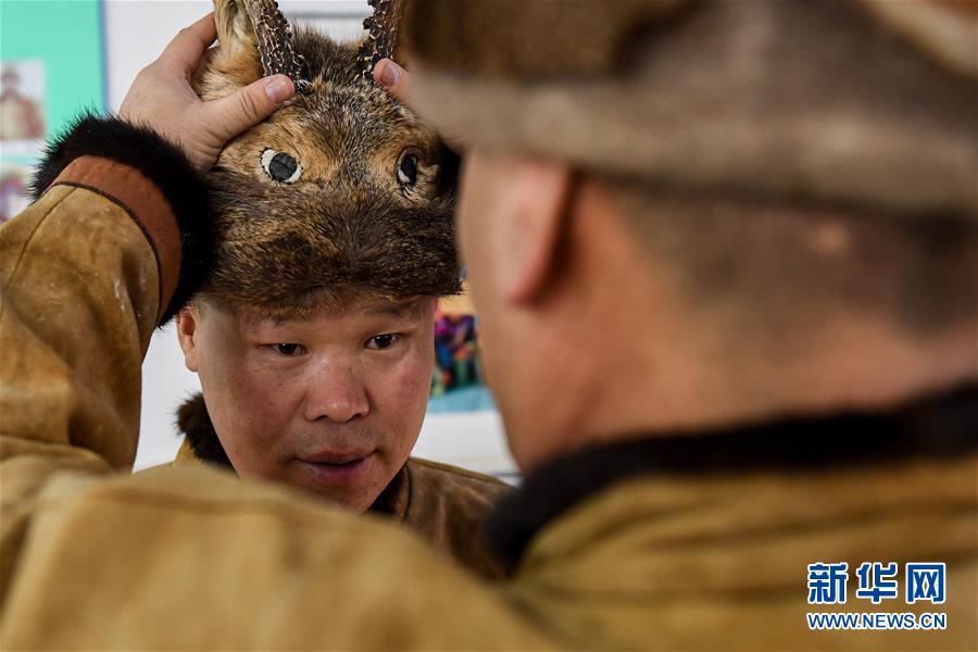 12月10日,在古里鄉(xiāng)非遺傳習(xí)所,鄂倫春族人吳曲忠在整理皮毛制品。新華社記者劉磊攝