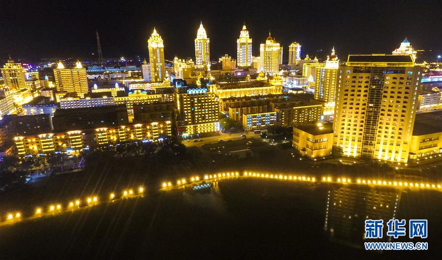 8月28日無人機拍攝的滿洲里市中心夜景。滿洲里市位于呼倫貝爾大草原腹地。新華社記者彭源攝