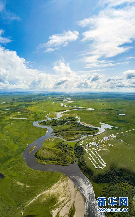 8月26日無人機拍攝的伊敏河(全景照片)。伊敏河流經呼倫貝爾草原。新華社記者沈伯韓攝