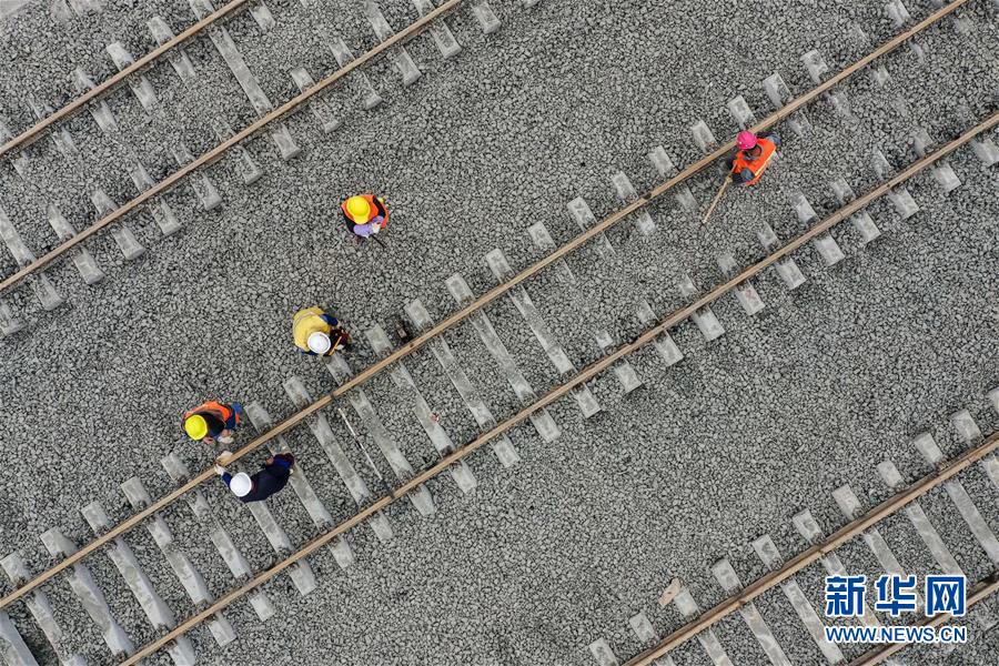 12月17日,中鐵八局建設者們在改貌鐵路口岸施工(無人機拍攝)。 新華社記者 劉續(xù) 攝