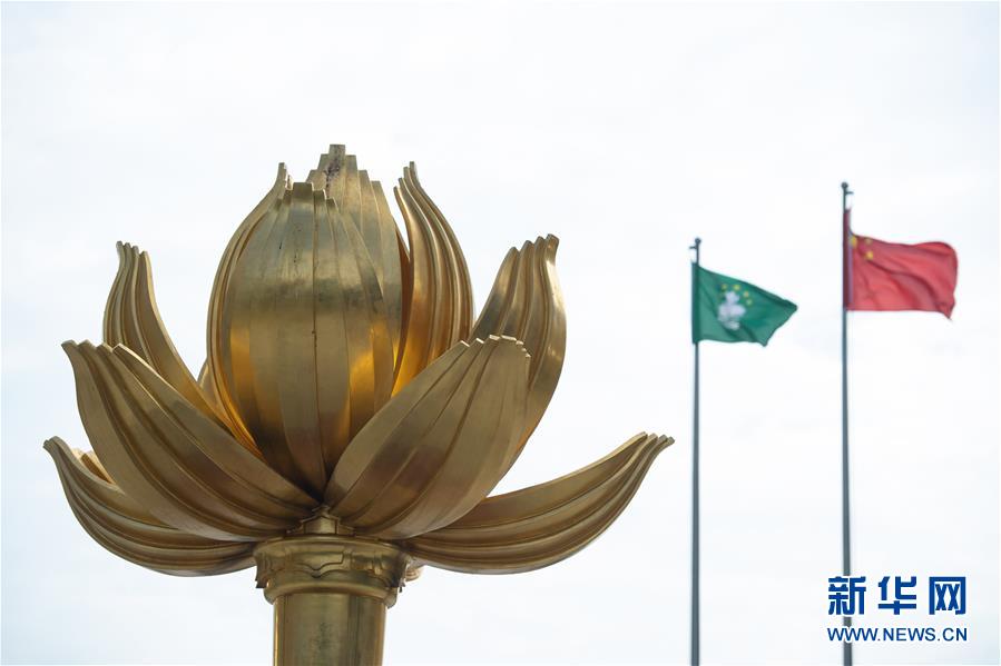 這是澳門金蓮花廣場上的《盛世蓮花》雕塑(12月13日攝)。新華社記者張金加攝