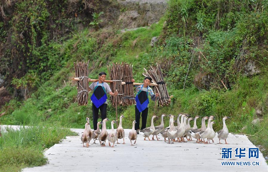 烏英苗寨秋收歸來(lái)的人們(9月2日攝)。新華社記者黃孝邦攝