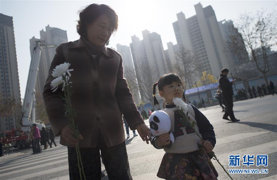 12月13日,南京市民手持菊花前往侵華日軍南京大屠殺中山碼頭遇難同胞紀念碑參加悼念活動。 當日是第六個南京大屠殺死難者國家公祭日,許多南京市民前往南京大屠殺死難者國家公祭儀式分會場悼念遇難同胞。 新華社記者李雨澤攝