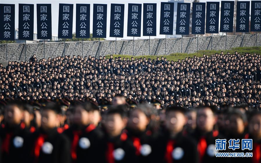 12月13日拍攝的南京大屠殺死難者國家公祭儀式現(xiàn)場。 當日是第六個南京大屠殺死難者國家公祭日,南京大屠殺死難者國家公祭儀式在侵華日軍南京大屠殺遇難同胞紀念館舉行。 新華社記者 李響 攝