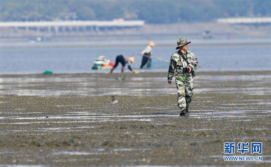 海南儋州新英灣紅樹林市級自然保護(hù)區(qū)護(hù)林員陳正平在保護(hù)區(qū)內(nèi)的灘涂上巡護(hù)(12月10日攝)。陳正平2010年開始在保護(hù)區(qū)工作,他將工作發(fā)展成愛好,廣泛參加各種培訓(xùn)和業(yè)內(nèi)交流。他在工作中拍到瀕危鳥類白肩雕出現(xiàn)在海南的照片,這刷新了海南省的鳥種記錄。新華社記者楊冠宇攝