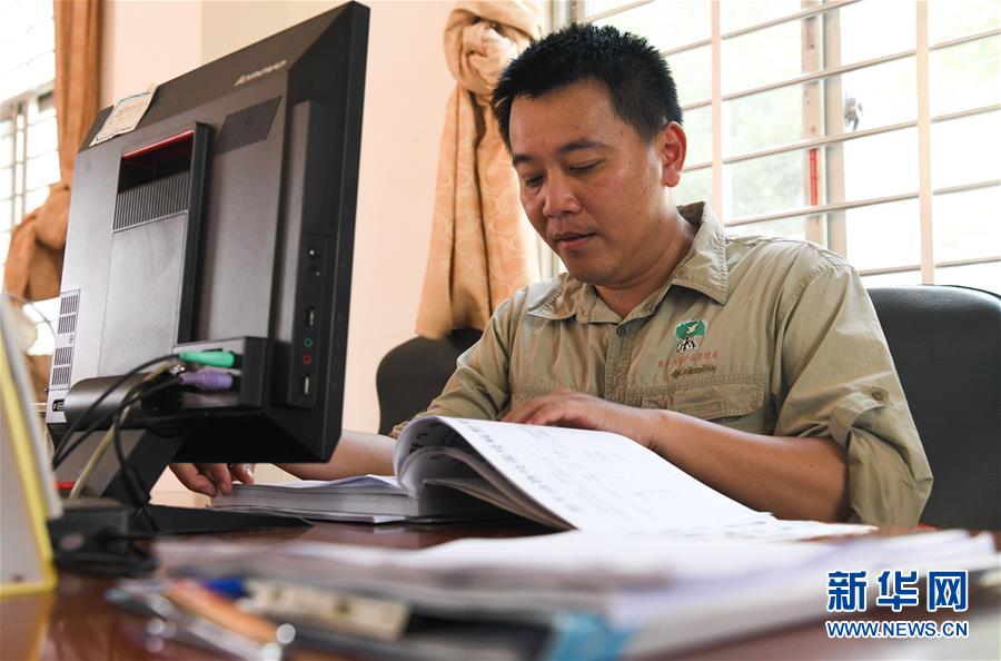 海南新盈紅樹林國家濕地公園巡護(hù)員兼監(jiān)測員羅理想(右)在濕地公園內(nèi)的辦公室里與同事探討工作(12月10日攝)。 羅理想2006年起開始參與紅樹林濕地的保護(hù)工作,近年來他參加了很多關(guān)于濕地的培訓(xùn)。2016年,羅理想在工作中監(jiān)測到極危鳥種勺嘴鷸,當(dāng)時有許多媒體做了報道,后來他又配合專家在濕地公園里發(fā)現(xiàn)了拉氏紅樹,“那個時候感覺自己的工作很有價值”,羅理想說。 新華社記者楊冠宇攝