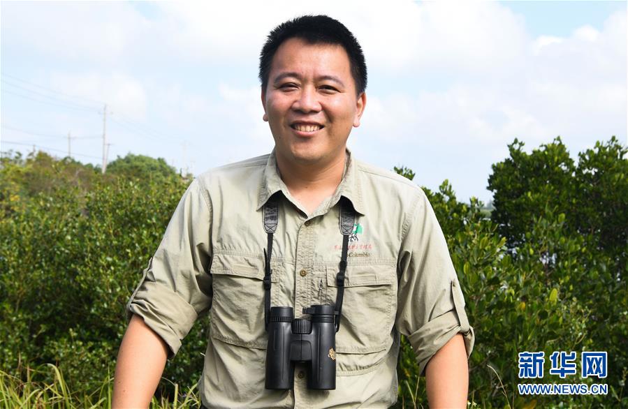 海南東寨港國家級自然保護區(qū)林業(yè)工程師馮爾輝(12月18日攝)。 馮爾輝2009年大學畢業(yè)后來到保護區(qū)工作,小時候他家就住在紅樹林邊上,他從小和紅樹林打交道,喜歡動植物和鳥類。外貿(mào)專業(yè)畢業(yè)的他邊工作邊學習,目前主要從事鳥類監(jiān)測、紅樹林保育、自然教育等工作。“紅樹林看著我長大”,馮爾輝說,濕地保護的工作非常有意義。 新華社記者楊冠宇攝