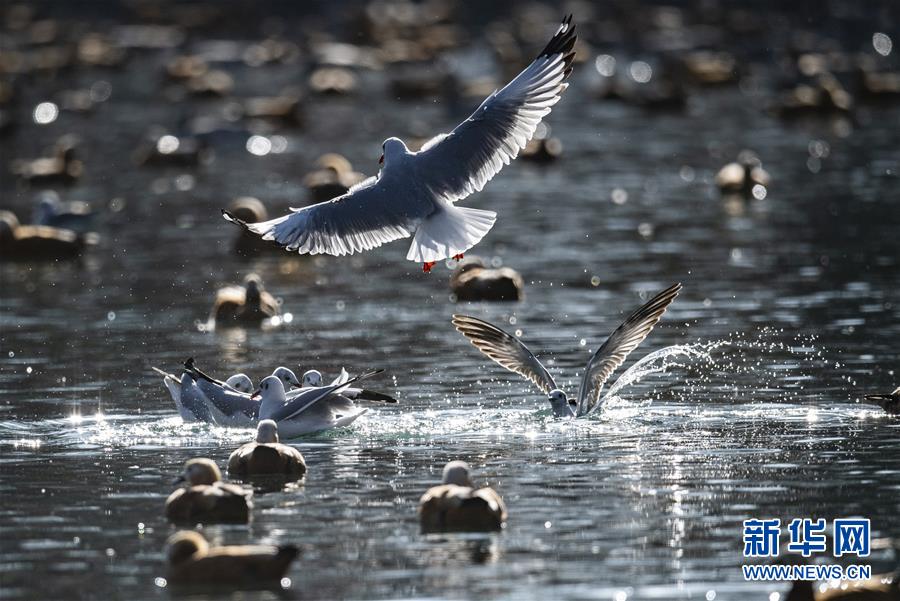 11月21日,候鳥在拉薩龍王潭公園水中嬉戲。新華社記者普布扎西攝