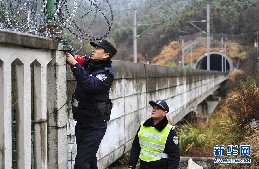 12月18日,常曉龍(左)在排查鐵路沿線護(hù)欄的安全隱患。新華社記者鄧堅攝