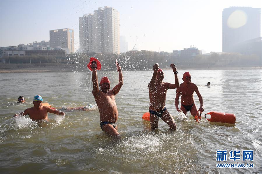 12月18日,冬泳愛好者趙西普在黃河冬泳。新華社記者陳斌攝