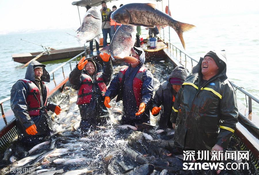 2018年12月26日,吉林松原,查干湖迎來(lái)了“紅網(wǎng)”,單網(wǎng)捕撈約30萬(wàn)斤。