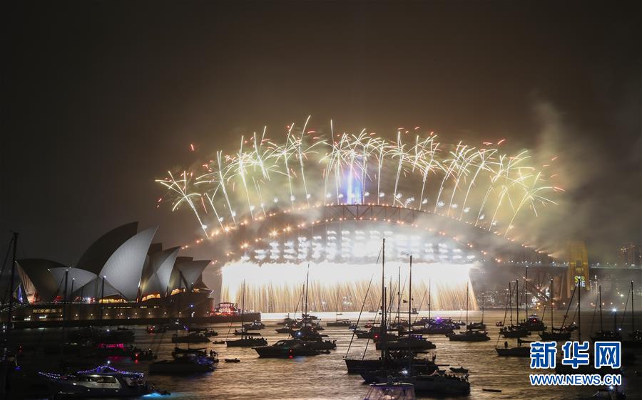 當(dāng)?shù)貢r(shí)間2020年1月1日,澳大利亞悉尼歌劇院和海港大橋畔燃放煙花,慶祝2020年的到來(lái)。新華社記者白雪飛攝
