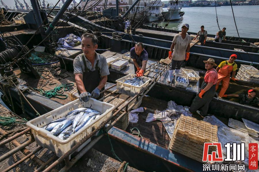 連日來(lái),山東日照嵐山中心漁港迎來(lái)秋捕高產(chǎn)期,鲅魚(yú)、帶魚(yú)、鯧魚(yú)、螃蟹等種類豐富的海產(chǎn)品大量上岸,漁民抓緊時(shí)間分揀裝運(yùn),保障節(jié)日市場(chǎng)海鮮供應(yīng)。