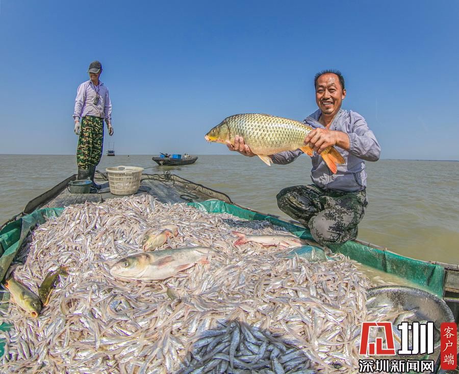2019年8月24日,江蘇省宿遷市泗洪縣龍集鎮(zhèn)尚咀居洪澤湖水域,漁船點(diǎn)點(diǎn),魚(yú)蝦滿倉(cāng),整個(gè)湖面一片繁忙。漁民們持證捕撈,依法作業(yè),沉浸在豐收的喜悅之中。